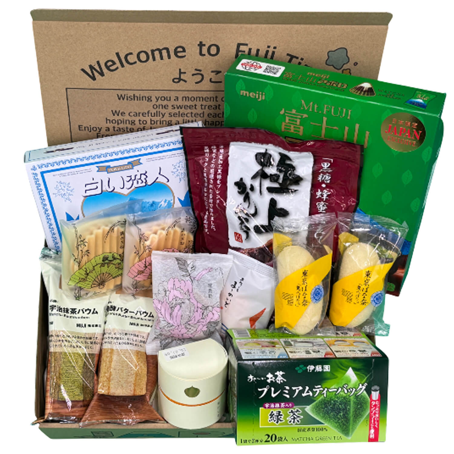 Each box features a rich variety of textures and flavors—from soft cakes and delicate chocolate to traditional confections crafted with Japanese craftsmanship.